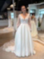 DaisyGown InfoSize RangeRegal and elegant, this gown features matte lace and a modern square neckline!
